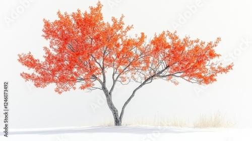 © Sam-th, Fototapeta premium Vibrant Orange Tree in Winter Landscape with White Background