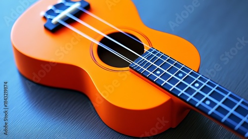 Fototapeta premium Vibrant Orange Ukulele on Blue Surface