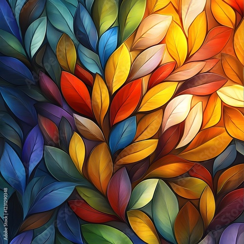 Fototapeta premium Vibrant Organic Leaves Pattern with Luminous Impressionistic Greenhouse...