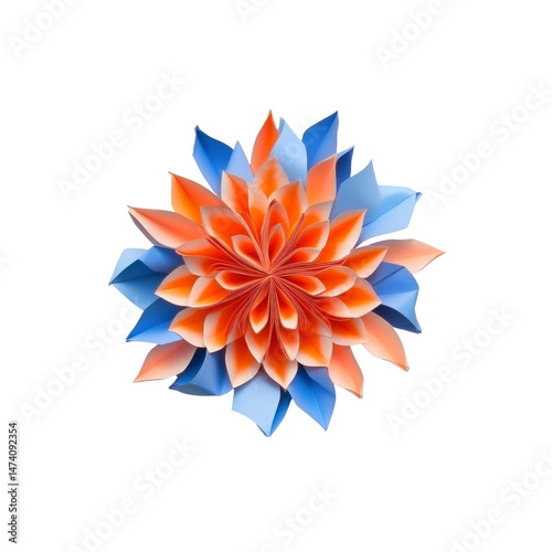© HH CA Studio, Fototapeta premium Vibrant Origami Flower Blue and Orange Paper Dahlia