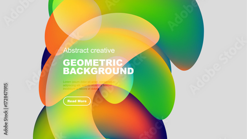 © antishock, Obraz premium Vibrant overlapping shapes create dynamic abstract background. Text present, button visible. Modern design elements dominate composition.