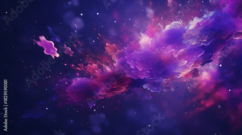 © Nesham, Fototapeta premium Vibrant paint particles flying over purple setting