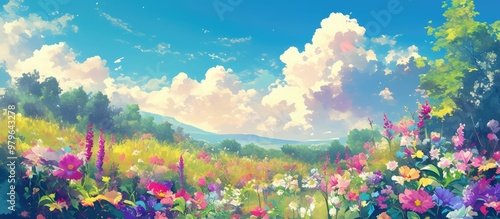 Fototapeta premium Vibrant painting of a blooming garden featuring a diverse array of colorful...