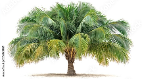Fototapeta premium Vibrant Palm Tree Standing Alone on Sandy Ground Under Clear Sky