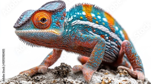 Fototapeta premium Vibrant Panther Chameleon Closeup Exotic Reptile Colorful Skin Wildlife