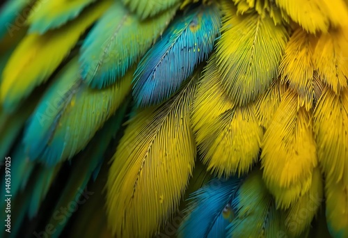 © Rans photography, Fototapeta premium Vibrant Parrot Feathers: A Close-Up Study in Teal and Gold