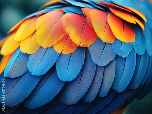 Fototapeta premium Vibrant parrot feathers in multicolor patterns with close texture detail