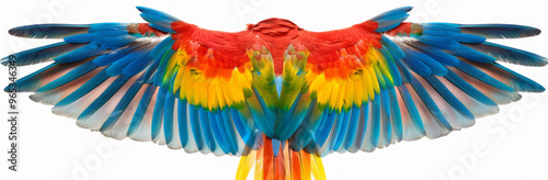 Obraz premium Vibrant parrot wings are set against a white backdrop.