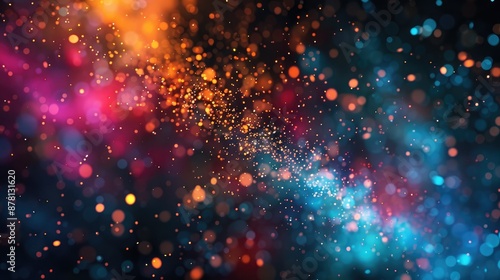 © AkuAku, Fototapeta premium Vibrant particles burst against dark backdrop