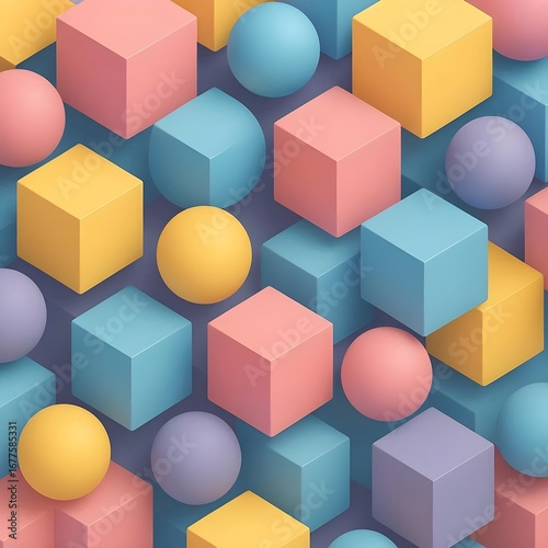© Mahesh, Fototapeta premium Vibrant Pastel Geometric Shapes Abstract Wallpaper