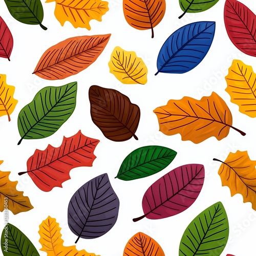 Obraz premium Vibrant Pattern of Autumn Leaves in Various Colors on a White Background