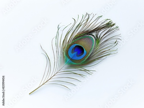 © Balaraw, Obraz premium Vibrant peacock feather against a white background