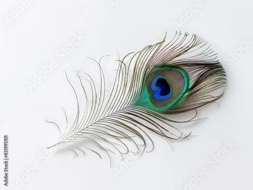 © Balaraw, Obraz premium Vibrant peacock feather against a white background