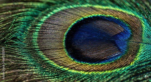 © Angga Yudistira, Obraz premium Vibrant Peacock Feather Detail with Blue Eye and Green Filaments