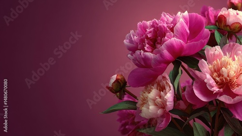 Obraz premium Vibrant Peony Bloom: Captivating close-up of delicate peony blossoms against a soft, gradient backdrop, evoking a sense of tranquility and beauty, celebrating the floral art.