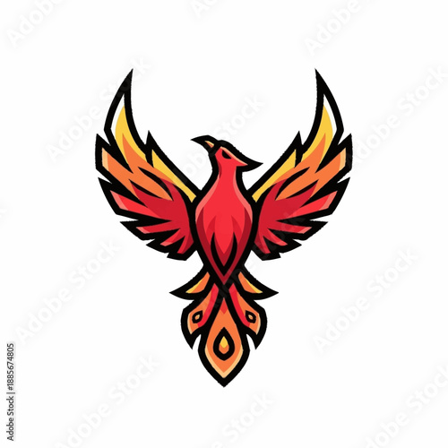 © Dong, Obraz premium Vibrant Phoenix Bird Logo with Fiery Wings and Tail.
