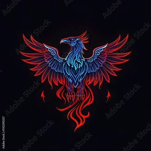 © Chonlachit, Fototapeta premium Vibrant phoenix illustration digital art fantasy black background colorful design for creative projects