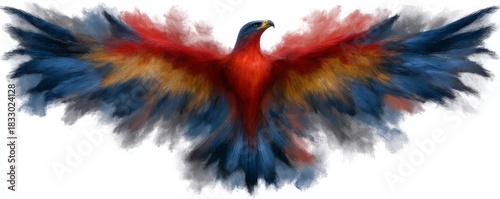 © kachakanogAS, Fototapeta premium Vibrant phoenix tattoo design featuring bright red, orange, and blue colors, symbolizing rebirth and energy