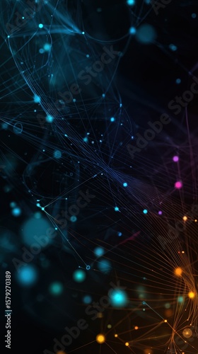 Obraz premium Vibrant photo of abstract technology features glowing web design dark background various colors.