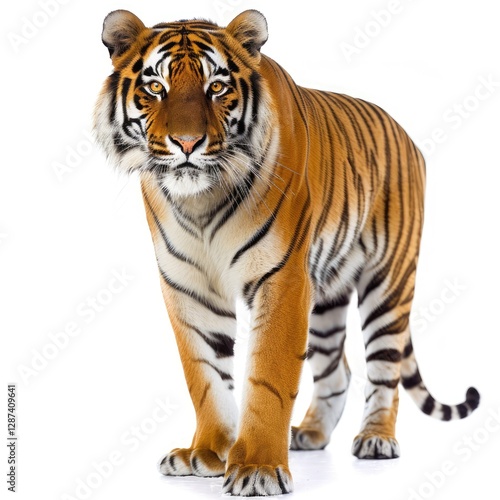 Naklejka premium Vibrant Picture of a Photo Tiger, Isolated on a White Background