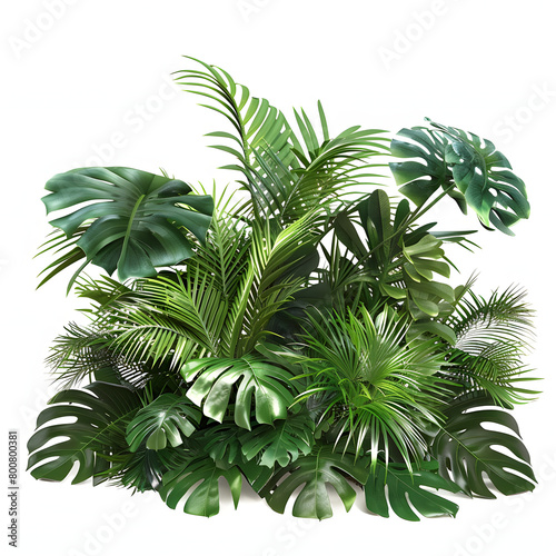 © Qory, Fototapeta premium Vibrant pile of lush green tropical plants, creating a refreshing oasis, isolated on a pristine white background