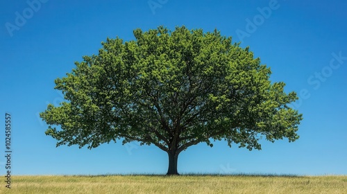 © Vesna, Fototapeta premium vibrant pin oak tree in full foliage displaying rich green leaves against a clear blue sky capturing the beauty of natures transition into summer