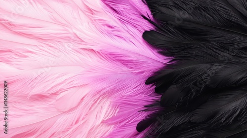 © Flowaiart, Obraz premium Vibrant Pink and Black Feather Background for Creative Design Projects