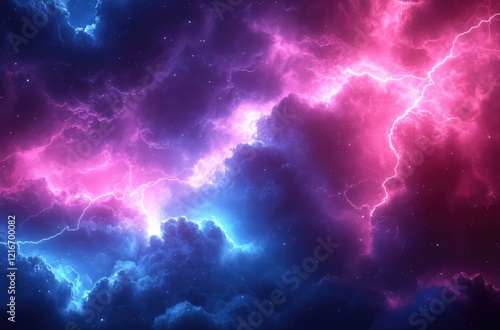 © emzee, Fototapeta premium Vibrant Pink and Blue Cosmic Nebula With Glowing Energy Streaks