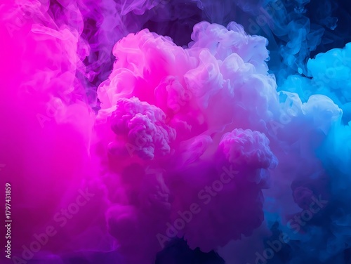© Md, Fototapeta premium Vibrant pink and blue smoke clouds exploding in darkness