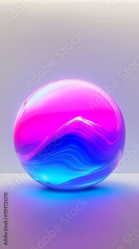 © Denys, Obraz premium Vibrant pink and blue sphere emanating light on gray surface