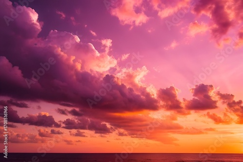 © MIkrom, Fototapeta premium Vibrant Pink And Orange Sunset Sky Over Calm Ocean