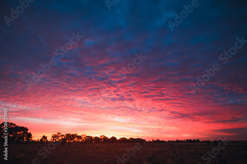 © Caseyjadew, Fototapeta premium Vibrant pink and purple sunset sky in Central Victoria, Australia