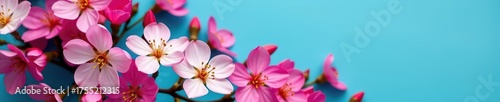 © photohappy, Obraz premium Vibrant pink and white spring blossoms arranged on a serene blue backdrop. Perfect for celebrating the season, festive, vibrant, nature