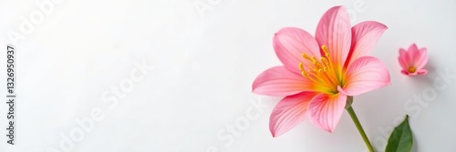 Naklejka premium Vibrant pink and yellow flower with delicate petals on a clean white...