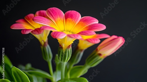 © Solaiman, Fototapeta premium Vibrant Pink and Yellow Flowers Closeup Macro Photography