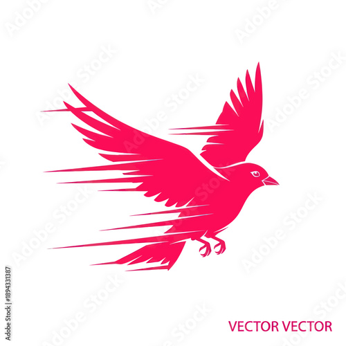 Fototapeta premium Vibrant Pink Bird Flying with Motion Blur Effect, Abstract Vector Art