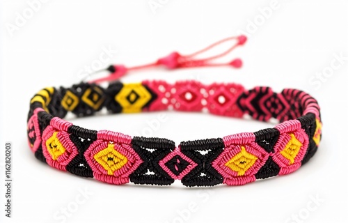 © Abdul, Fototapeta premium Vibrant Pink, Black, Yellow Woven Friendship Bracelet