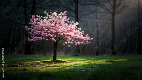 © Level UP, Naklejka premium Vibrant Pink Blossoms on a Springtime Forest Tree