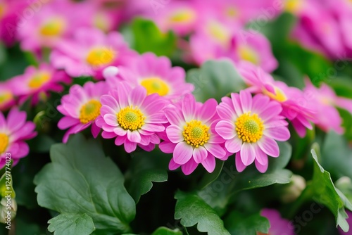 © Marko, Fototapeta premium Vibrant pink daisies blooming in a garden setting