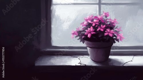 Fototapeta premium Vibrant Pink Flowers in a Sunlit Window