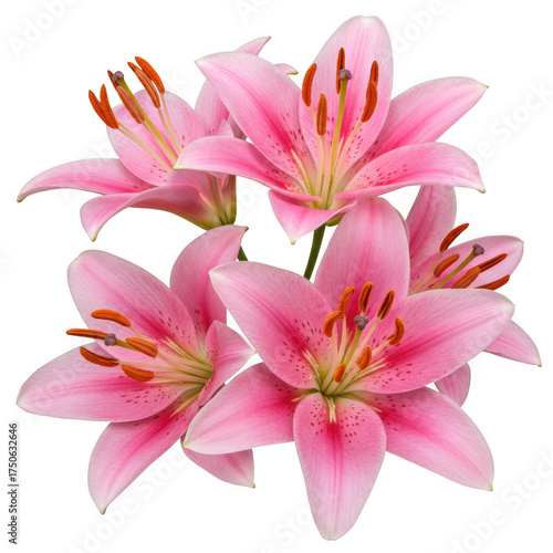 © Vector 42, Naklejka premium Vibrant pink lilies blooming in a detailed close-up studio photograph isolated on transparent background