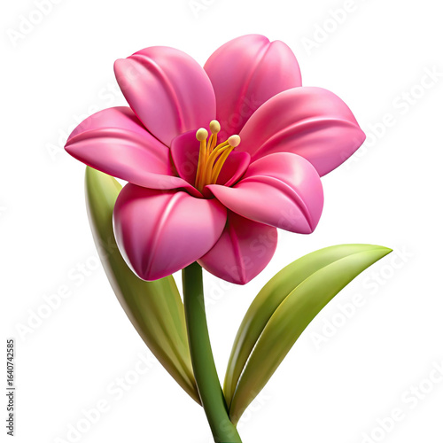 Fototapeta premium Vibrant pink lily flower with green leaves on white background