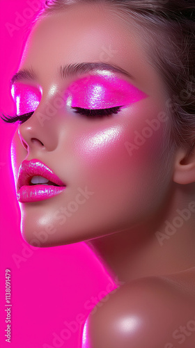 Obraz premium vibrant pink makeup bold eyeshadow beauty young elegant model modern creative...