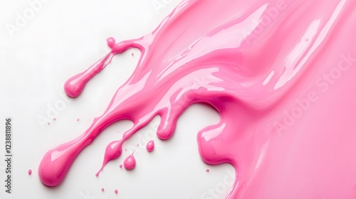 Naklejka premium Vibrant pink paint fluid flowing on a white background, creates a visual...