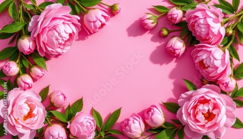 Fototapeta premium Vibrant Pink Peonies Framed Against Soft Pastel
