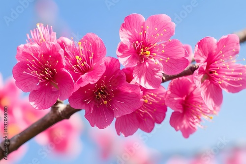 © Mr, Obraz premium Vibrant Pink Plum Blossoms Spring Flowers Close Up