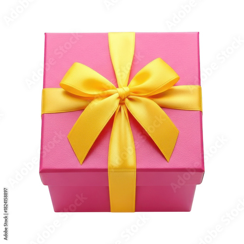 © twilight mist, Obraz premium Vibrant pink presentation box is adorned with a bright yellow satin bow