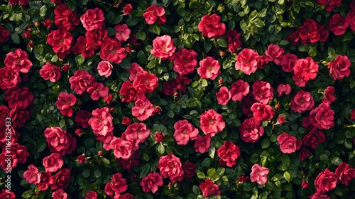 © ALIS ST, Naklejka premium Vibrant Pink Roses Blooming in a Lush Green Garden Setting