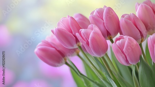 Fototapeta premium Vibrant Pink Tulip Flowers in Bloom Against a Soft Pastel Background :...