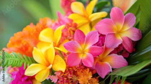 © Berkah1789, Fototapeta premium Vibrant Pink Yellow Tropical Flowers Bouquet